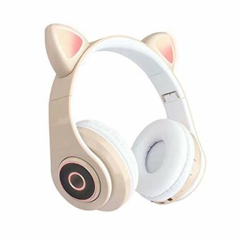 B39 Cute Cat Ear Headset Wireless BT5.0 Foldable Gaming Headphone with Flash RGB lights Earphone TF Card Play/Wired Mode Khaki