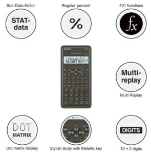 Casio FX-100MS 2nd Gen Non-Programmable Scientific Calculator, 300 Functions and 2-line Display, Black
