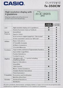 Casio Class Wiz Standard Scientific Calculators FX-350CW-W-DT