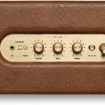The Marshall Acton III 60W Bluetooth Speaker in Brown delivers powerful, room-filling sound with Bluetooth 5.2 and versatile input options in a compact design.