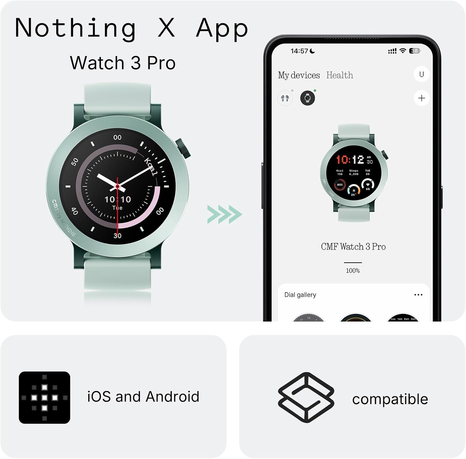 CMF Watch 3 Pro Green Smartwatch Bluetooth Calling GPS IP68 Fitness Tracker