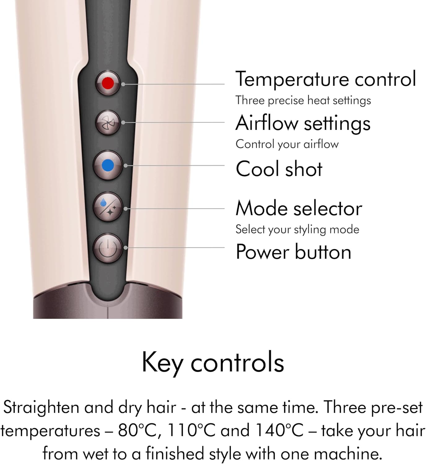 Finished in an elegant Ceramic Pink and Rose Gold design, the Dyson Airstrait combines premium aesthetics with cutting-edge performance. Its lightweight and ergonomic build ensures comfortable handling, making it perfect for daily styling at home or on the go.