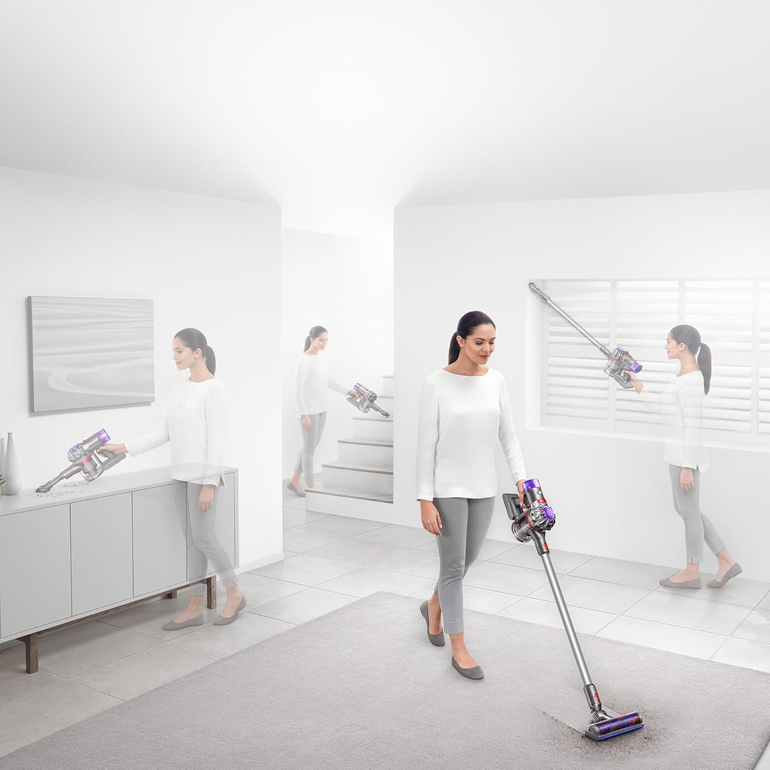 The cordless and lightweight design allows you to move freely around your home, making cleaning quick and convenient. Whether you’re cleaning floors, stairs, or furniture, the V8 Absolute adapts easily to your needs.