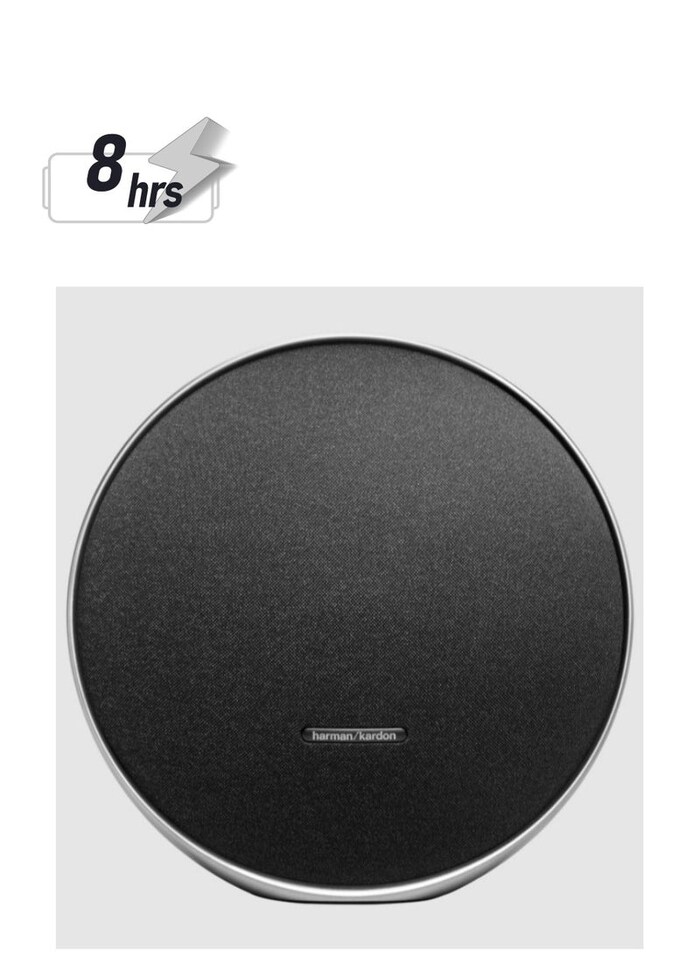 With its lightweight, compact design and built-in rechargeable battery, the Onyx Studio 9 lets you enjoy music on the go for hours without interruption.