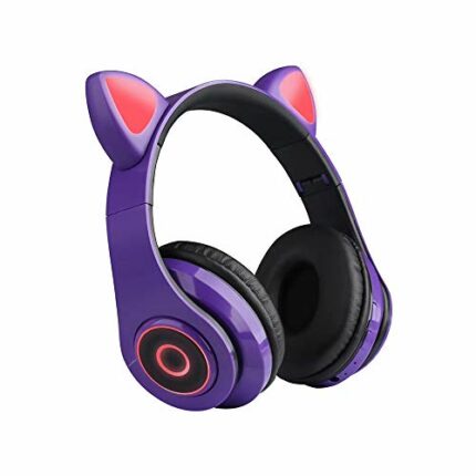 B39 Cute Cat Ear Headset Wireless BT5.0 Foldable Gaming Headphone with Flash RGB lights Earphone TF Card Play/Wired Mode Purple