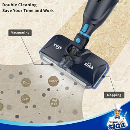 MR.SIGA 3 in 1 Cordless Lightweight Vacuum Cleaner Mop, Rechargeable 2500 mAh Lithium Battery Powered, including 2 Filters, 2 Microfiber Mop Cloths and 2 Dry Sweeping Pads