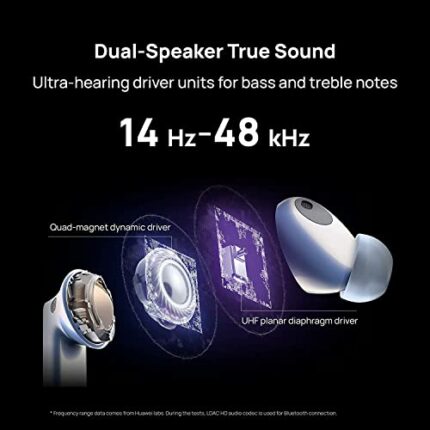 HUAWEI FreeBuds Pro 2, Dual Speaker True sound, Pure Voice, Intelligent ANC 2.0, HWA and Hi Res Audio Wireless Certified, Ceramic White, 55035847, Huawei Freebuds Pro2