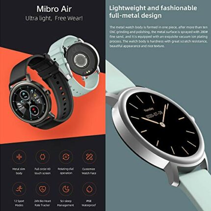 Global Version Mibro Air Smart Watch XPAW001 Fitness Watch with 12 Sports Modes 24h Bio Sleep Analysis Long Lasting Battery IP68 Waterproof BT5.0 Smartwatch Sports Activity