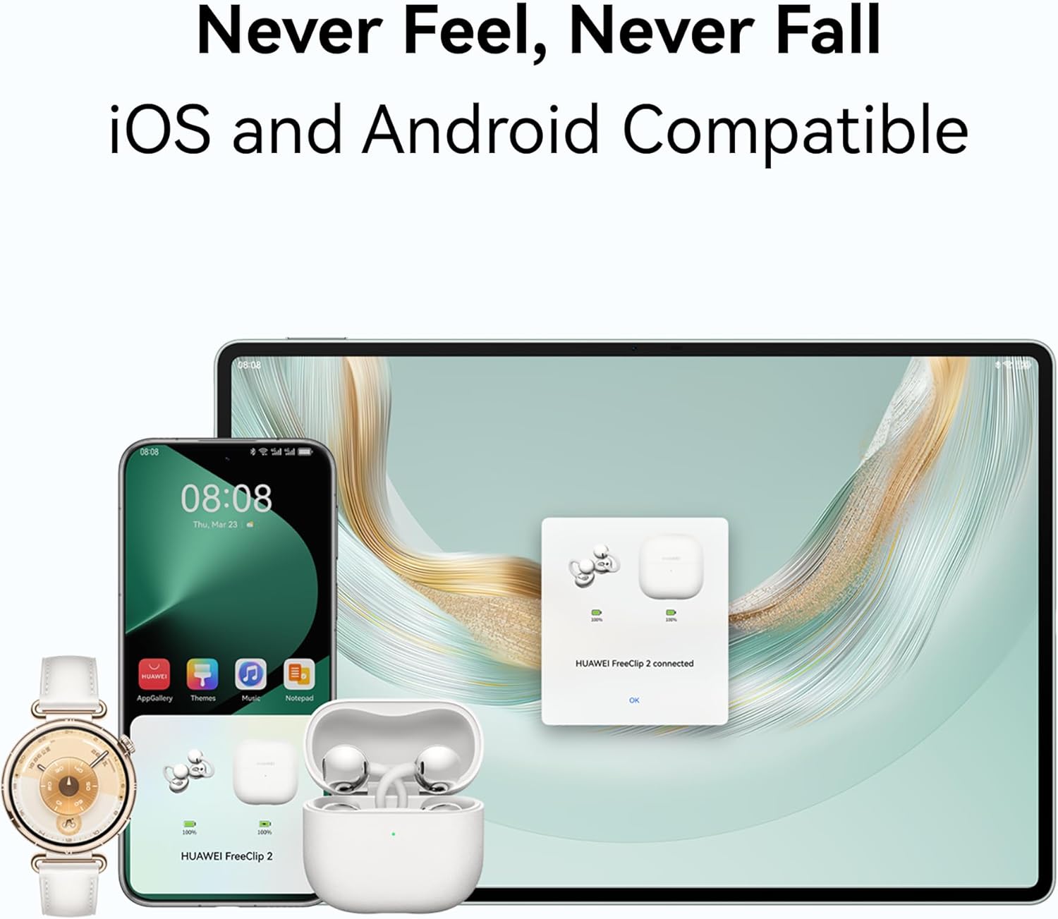 Home Accessories Huawei FreeClip 2 Open Ear Clip On Earbuds, Airy C-bridge design, Lightweight, 38H Battery, Fast Charge, Dual Driver, IP57 Waterproof & dust proof, Touch & Head-motion control, iOS & Android, White