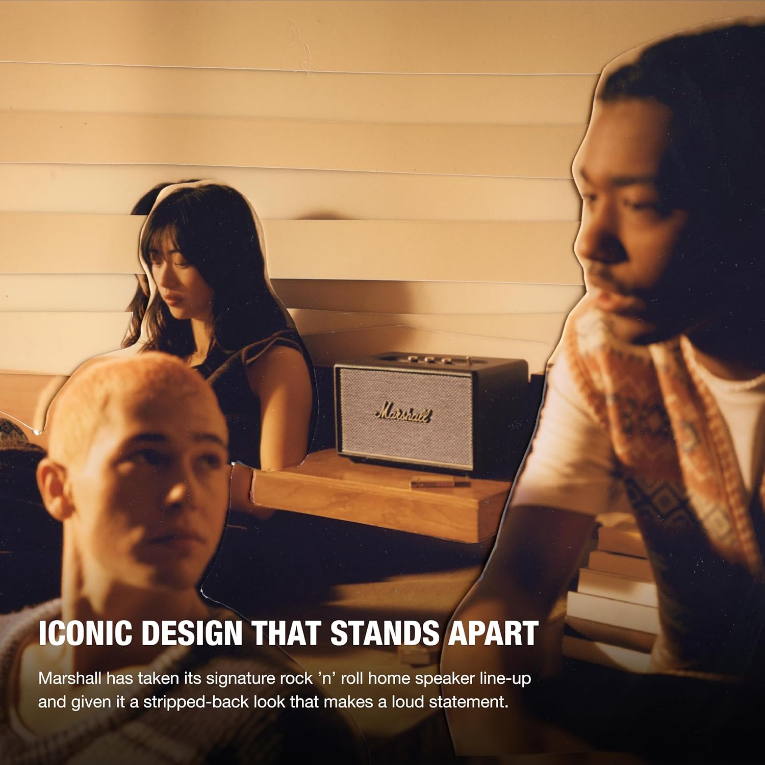 This new generation of the home line-up has an even wider soundstage than its predecessor, re-engineered for a more immersive experience. This new generation has tweeters angled outwards and updated waveguides to deliver a consistently solid sound that is so wide it chases you around the room. Experience a balanced sound, with crisp, soaring treble and controlled, rumbling bass. Built-in Dynamic Loudness adjusts the tonal balance of the sound, ensuring your music sounds brilliant at every volume, while Placement Compensation corrects for any nearby reflective surfaces that may affect the sound. Marshall has taken its signature rock ’n’ roll home speaker line-up and given it a stripped-back look that makes a loud statement. Its iconic design knocks all other speakers off the shelf. Generation III is ready for the future of Bluetooth technology and has been built to deliver next-generation Bluetooth features the moment they are available. Over 55 years of sound knowledge is combined with future-proof technology to completely immerse you in your music.