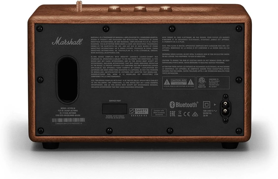 The classic Brown finish enhances its premium look, complemented by Marshall’s iconic design featuring textured vinyl, brass knobs, and vintage styling. The Marshall Acton III is the perfect combination of performance, versatility, and timeless design for modern homes.