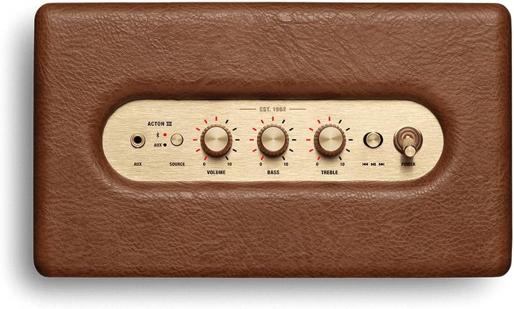 Buy Marshall Acton III Bluetooth Speaker Brown with powerful sound, Bluetooth 5.2 & RCA input. Premium compact home speaker in UAE.