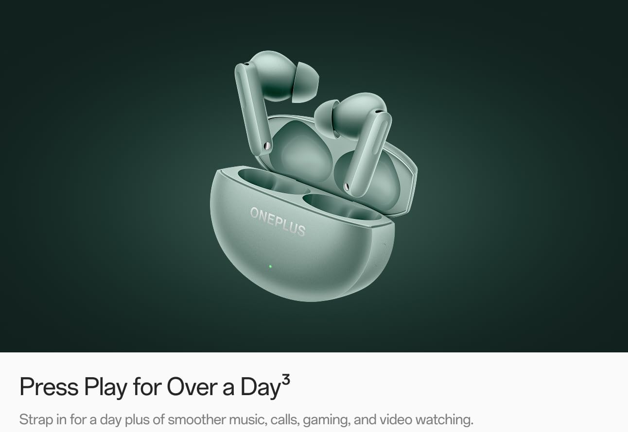 Equipped with 55dB dual active noise cancellation (ANC), the OnePlus Buds 4 Earbuds effectively block out background noise, delivering crystal-clear sound whether you’re commuting, working, or relaxing. The integration of a dedicated DAC and LHDC 5.0 technology ensures high-resolution audio with deep bass and detailed clarity.