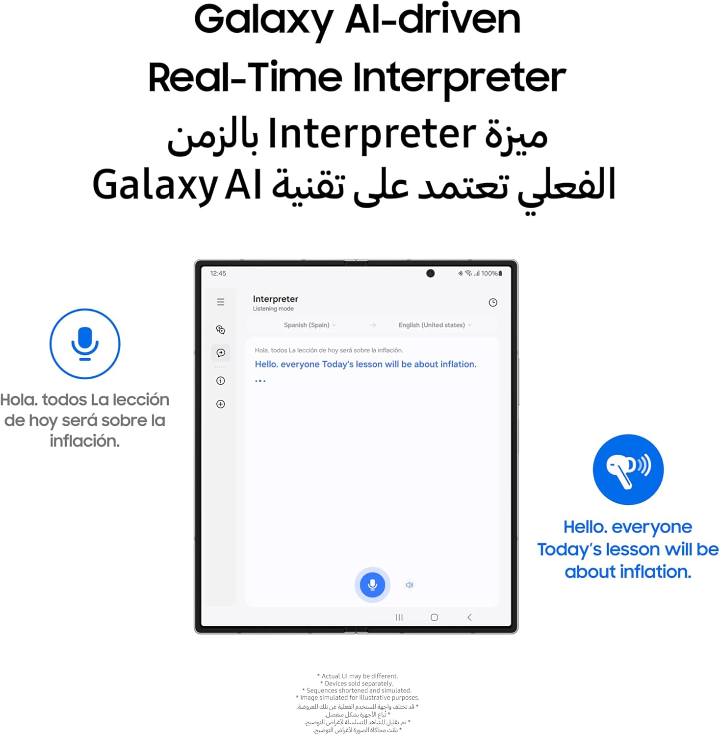 • They say “Hello,” you hear “Hello”: listen to translations through your Galaxy Buds during face-to-face conversations using real-time interpreter with Galaxy AI.