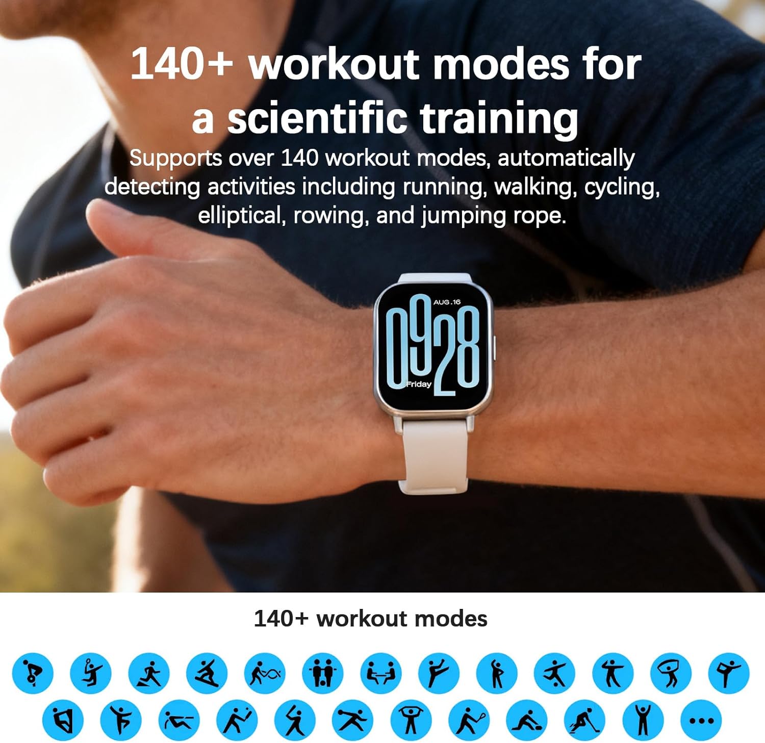 Track your health effortlessly with built-in heart rate monitoring and SpO2 tracking, giving you real-time insights into your wellness. The watch also supports over 140 fitness modes, helping you monitor everything from walking and running to advanced workouts—making it ideal for beginners and fitness enthusiasts alike.