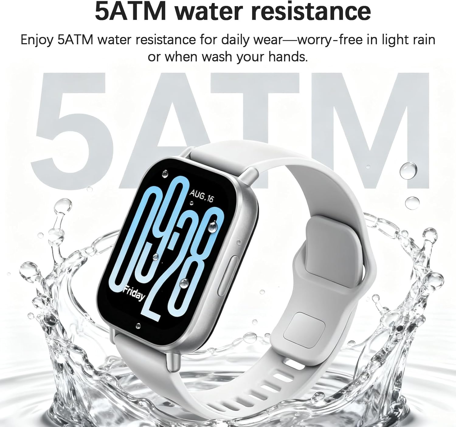 Designed for durability, the 5ATM water resistance rating ensures the watch can handle swimming, rain, and daily splashes without worry. The intuitive interface and smooth performance provide a user-friendly experience, while smart notifications keep you updated on messages, apps, and reminders throughout the day.